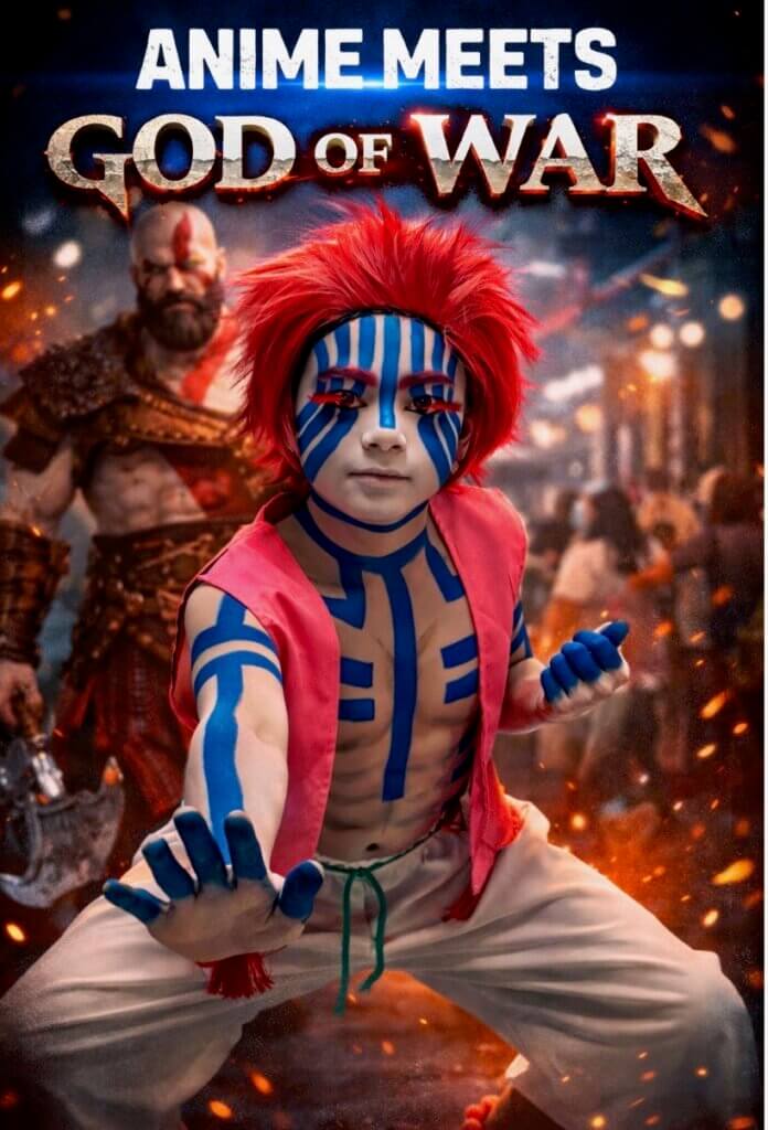 This Akaza body painting was realized for FAN EXPO Vancouver 2026. The transformation was designed to bring the character from Demon Slayer: Kimetsu no Yaiba into real life using anatomy-based placement, symmetry, and layered color work.
